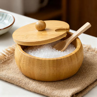 برطمان توابل ملح خشبي من الخيزران ، صندوق أوعية لتخزين الملح بغطاء وملعقة