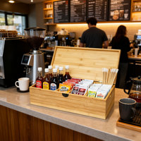 GLカウンタートッププレミアムウッドティーチェストバンブーティーボックスオーガナイザー、スライドアウトドロワーとバンブーリッド付き